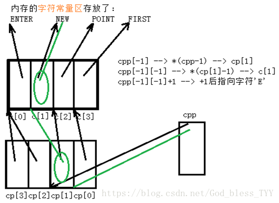 char **cp[] = { c + 3, c + 2, c + 1, c };