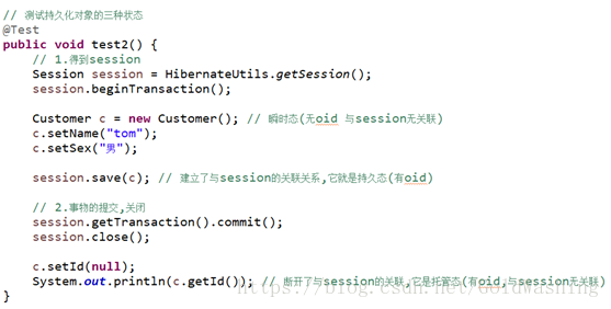 - 持久态: 在hibernate session管理范围内,它具有持久化标识oid 在事物未提交之前一直是持久态,当它发生改变的时候,hibernate是可以检测到的.