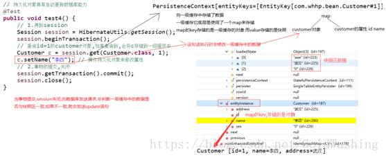 当我们通过hibernate中的session提供的一些api进行操作的时候,例如save get update等进行操作,就会将持久化对象保存到session中,当下一次再去查询缓存中具有的对象(oid来判断),就不会再去数据库中查询,而是直接从缓存中获取.