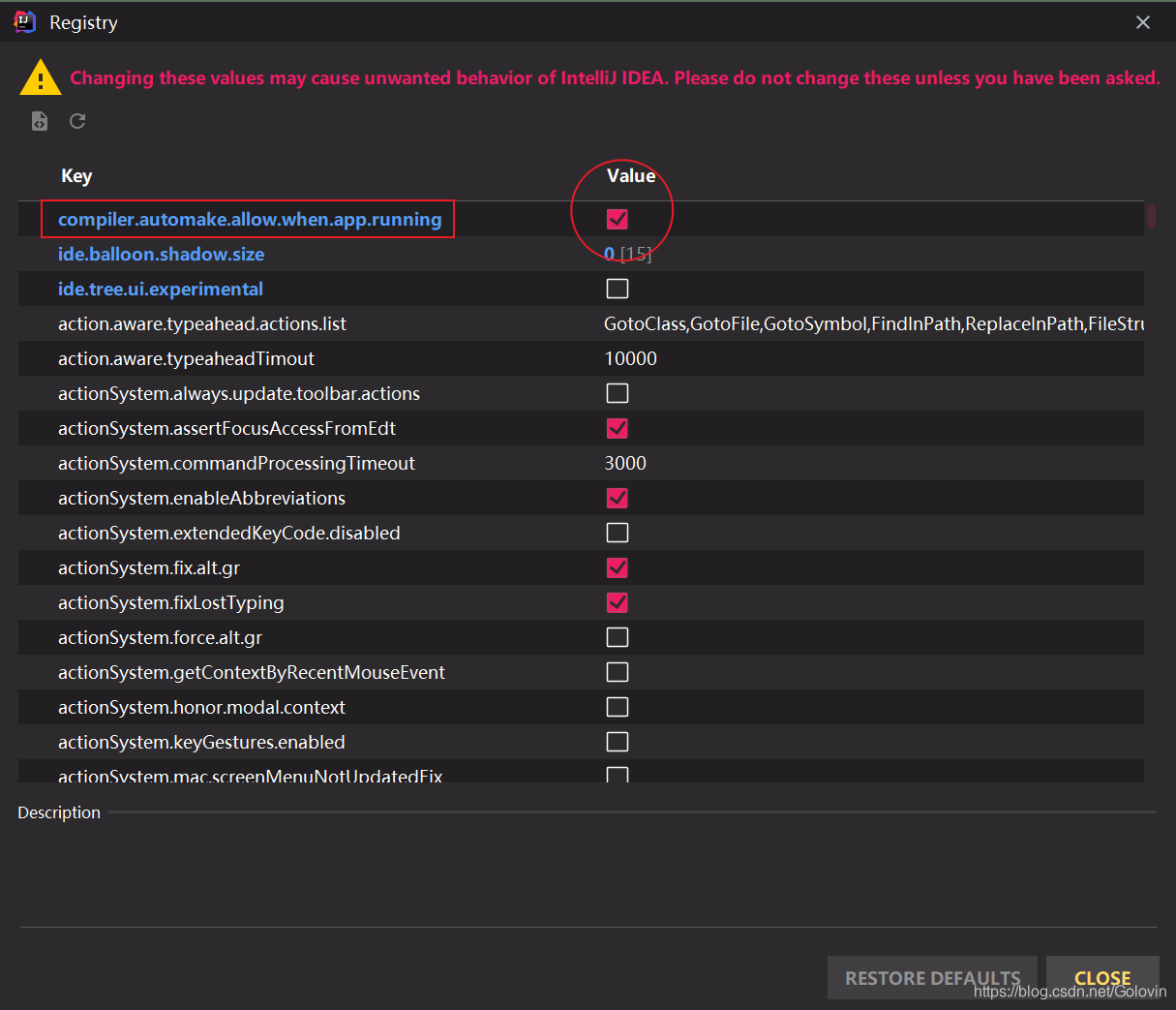 - 还有一个就是快捷键 ctrl+Alt+shift+/ ,搜索点击 Registry,勾選 compiler.automake.allow.when.app.running