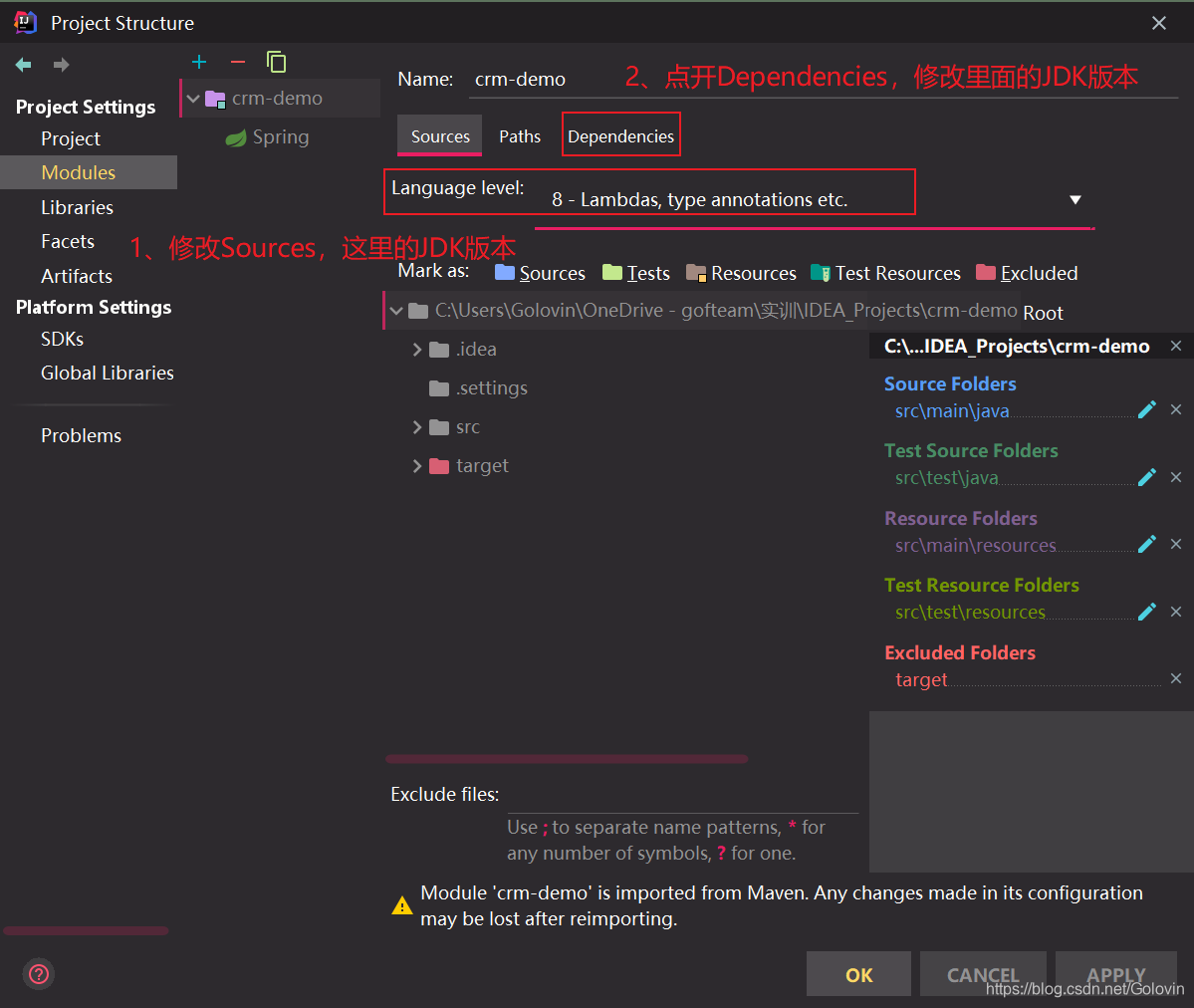 【步骤九】:(关键)修改各个模块的JDK版本,使它们保持一致(确认4个地方的JDK+1个JRE)