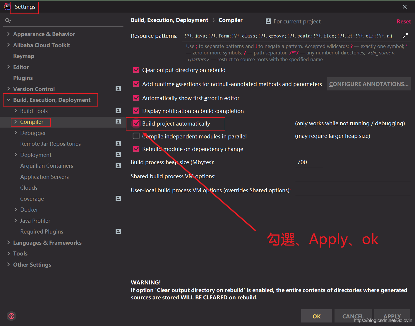 (路徑:File——Settings——Build,Execution,Deploument——Compiler——Build project automatically)
