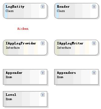 该模型定义了6个日志字段,分别与数据库或其他Appender对应,当AppLogProvider获得日志实体后,便会加载Render模块,对基本日志信息进行渲染。