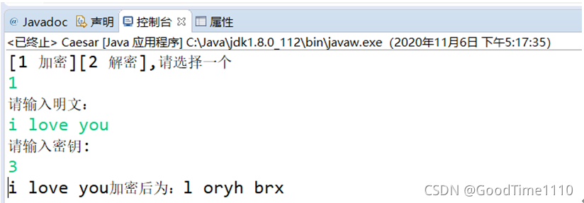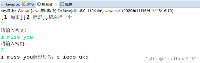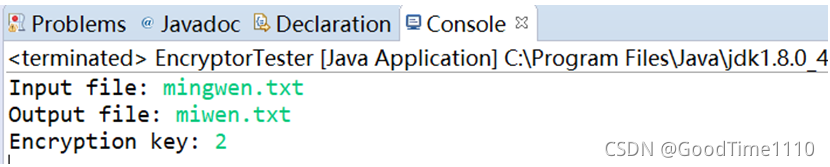 在控制台输入input文件,output文件以及密钥,如图5-7所示。