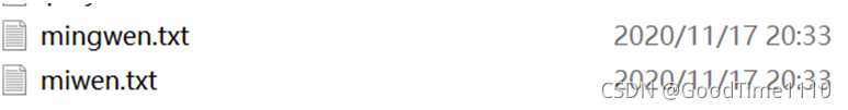 在work1项目下创建mingwen.txt和miwen.txt两个文件,如图5-5所示。