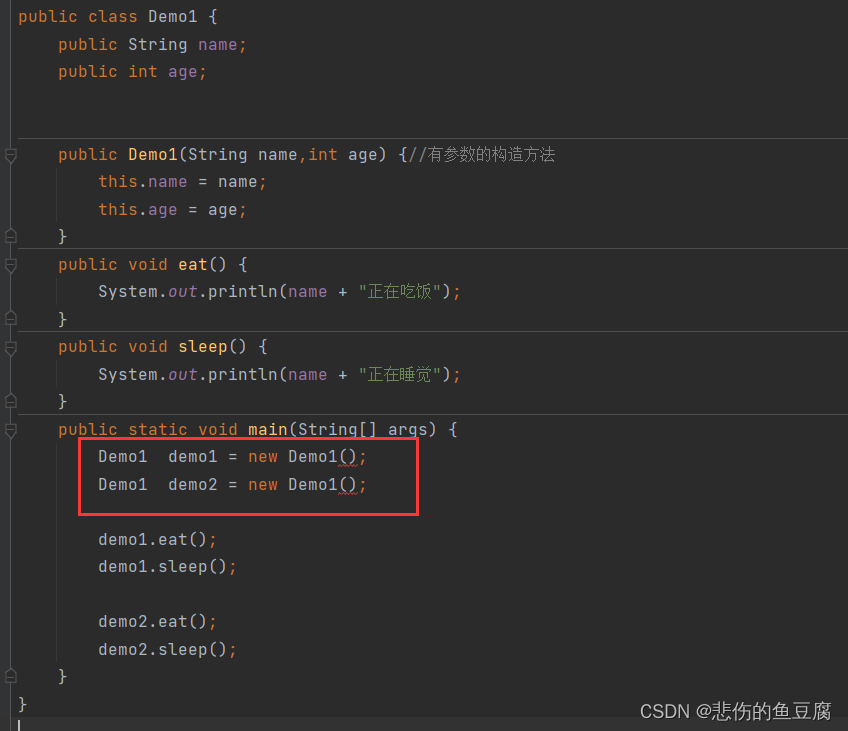 在 Demo1 demo1 = new Demo1() 这句代码中,实例化对象此时会调用对象的构造方法。但是我们在代码中并没有看到这个构造方法。