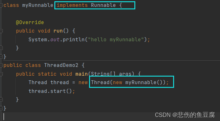 Runnable是一个接口,这个接口里面的方法都是抽象方法,所以要重写抽象方法