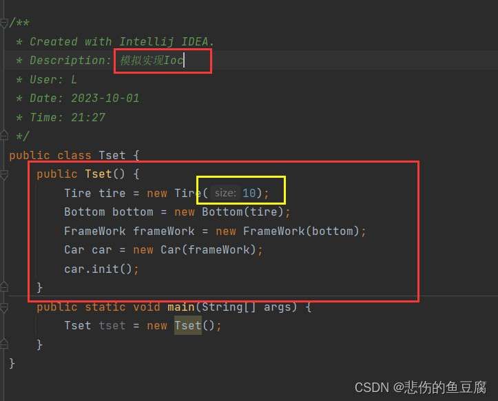 所以此时想要再次修改轮胎的大小时,直接修改tset里面的构造方法即可,不需要因为底层代码的变动而修改全部代码,所以说Ioc实现了解耦。
