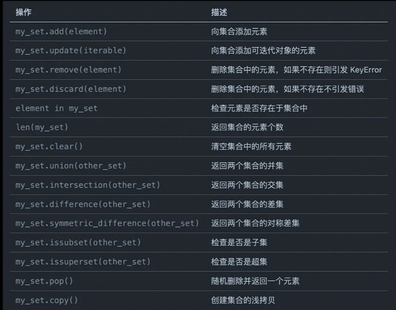 print(s2.isdisjoint(s4)) #True 没有交集为True