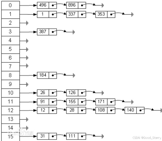 添加时,保证按照id从低到高插入 [课后思考:如果id不是从低到高插入,但要求各条链表仍是从低到高,怎么解决?]