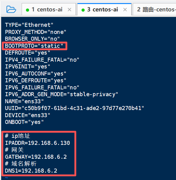 vi /etc/sysconfig/network-scripts/ifcfg-ens33