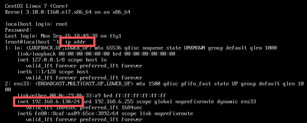 本机网卡名为:ens32,IP地址为:192.168.6.129,子网掩码为:255.255.255.0