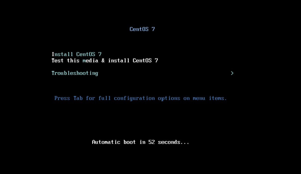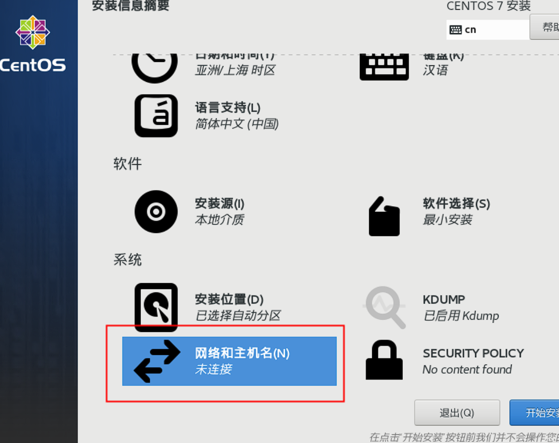 1》开启虚拟机,进入虚拟机后选择第一项安装centos7(installcentos7)