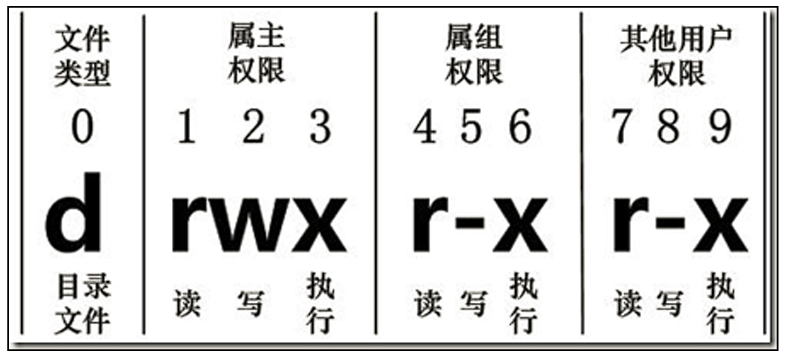 如果没有权限,就会出现减号[ - ]而已。从左至右用0-9这些数字来表示: