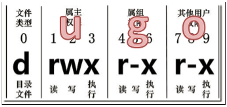 U:所有者 g:所有组 o:其他人 a:所有人(u、g、o的总和)