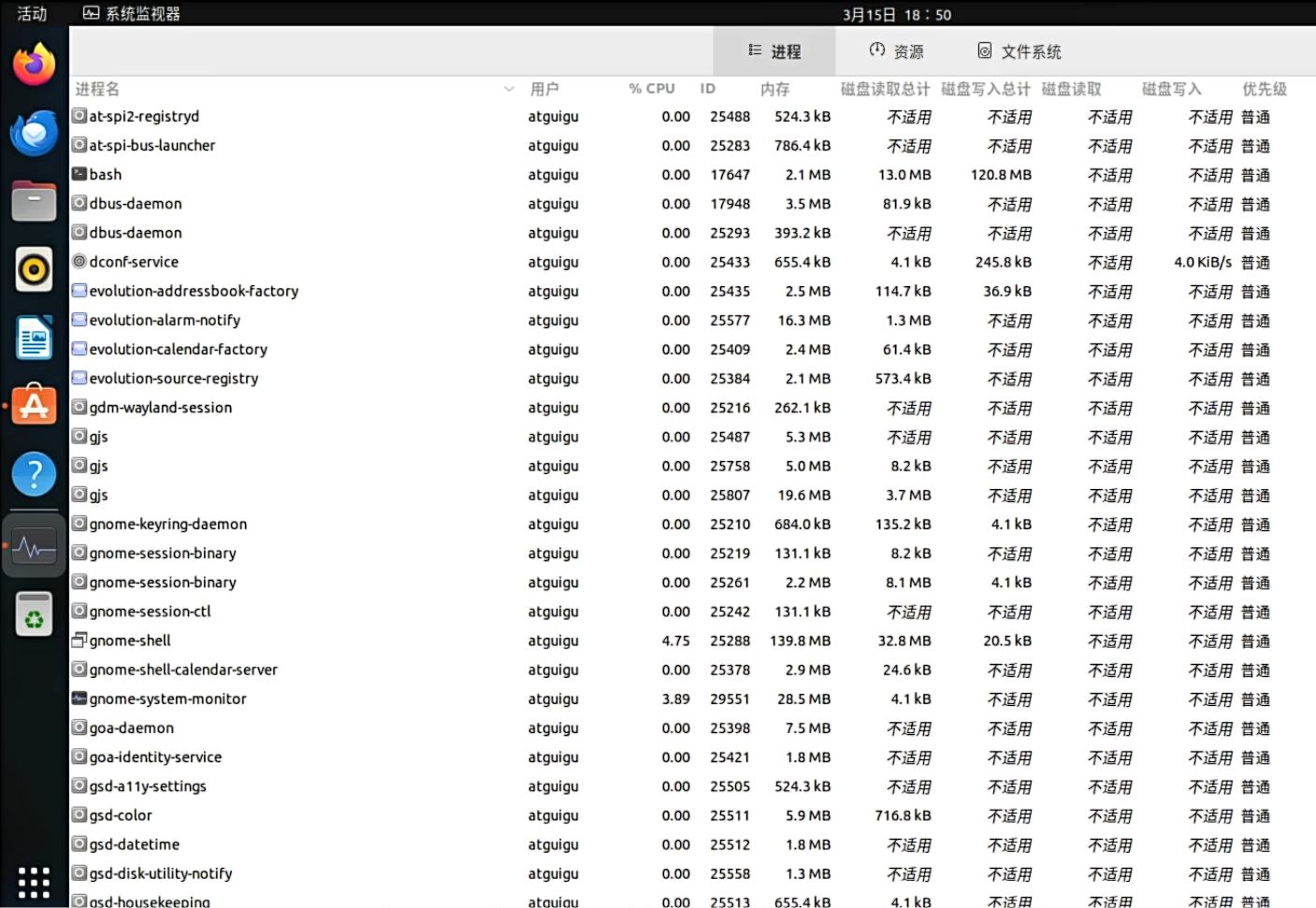 实际使用软件(Ubuntu自带的“系统监视器”)更方便