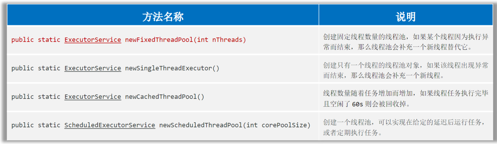 这些方法的底层,都是通过线程池的实现类ThreadPoolExecutor创建的线程池对象。