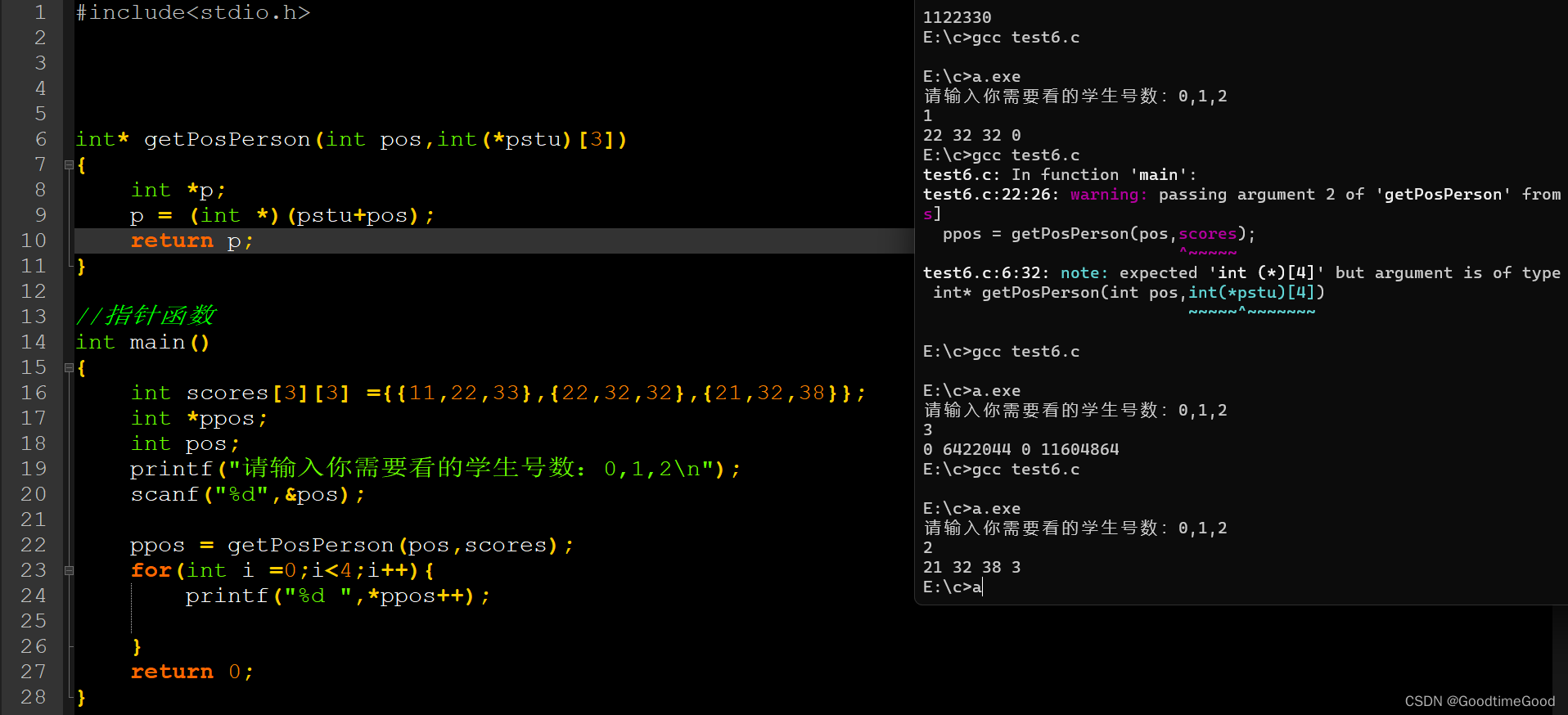 今天重点对指针函数进行了理解,写的代码如下: