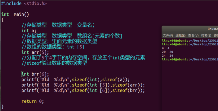 数组所占的内存空间 = sizeof (数据类型)*元素的个数