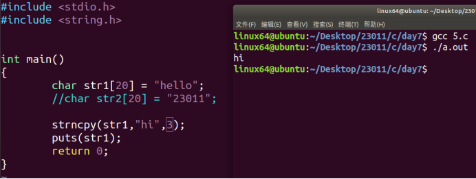 功能:将数组2中的内容拷贝到数组1中,包含‘\0’,相当于完全拷贝