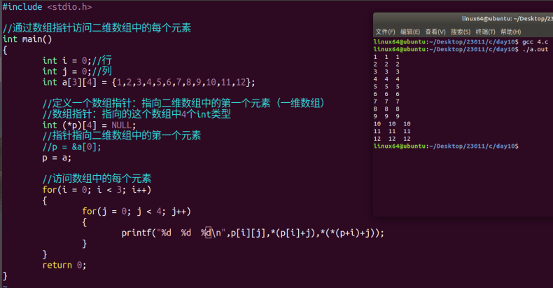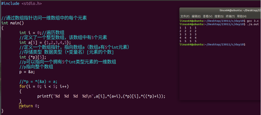 通过指针和数组之间的关系:(对数组进行输入输出)