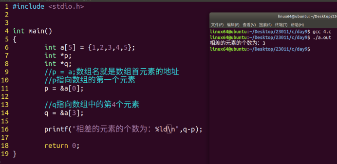p-q:(p和q的数据类型必须一致)这两个指针中相差的元素的个数