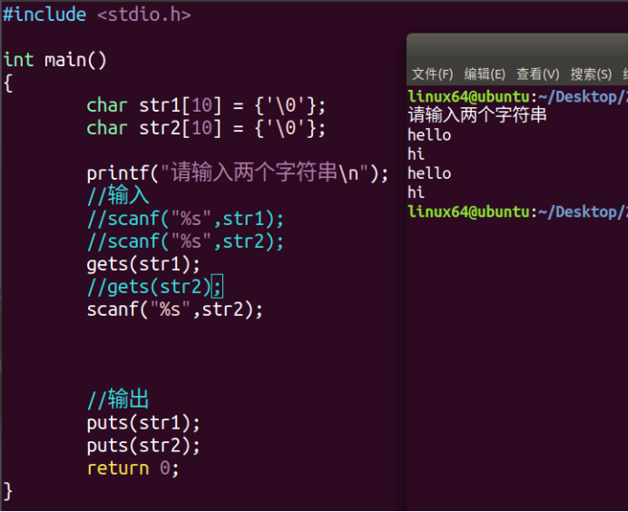 注意:gets不会进行越界检查,所以输入的时候不要越界