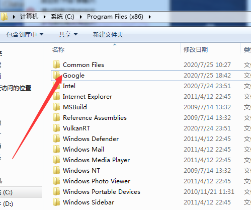 2、向上基层,找到Program Files(x86)文件夹中的Google,将其整个剪切到D盘。