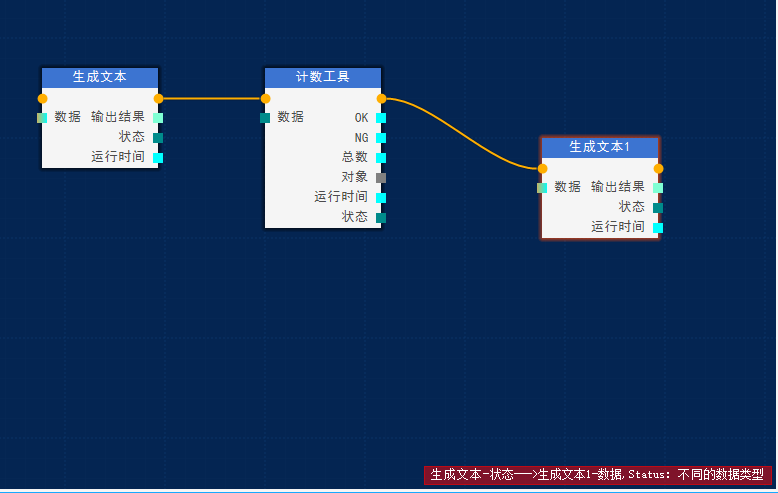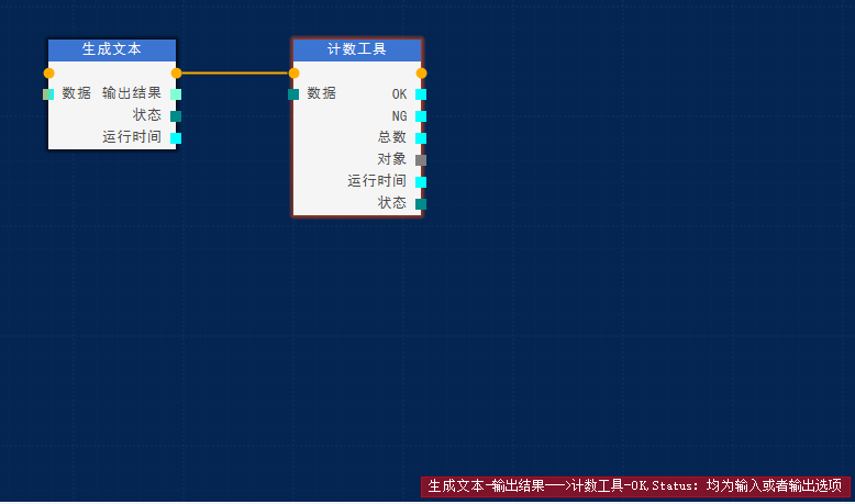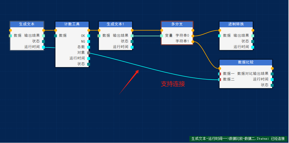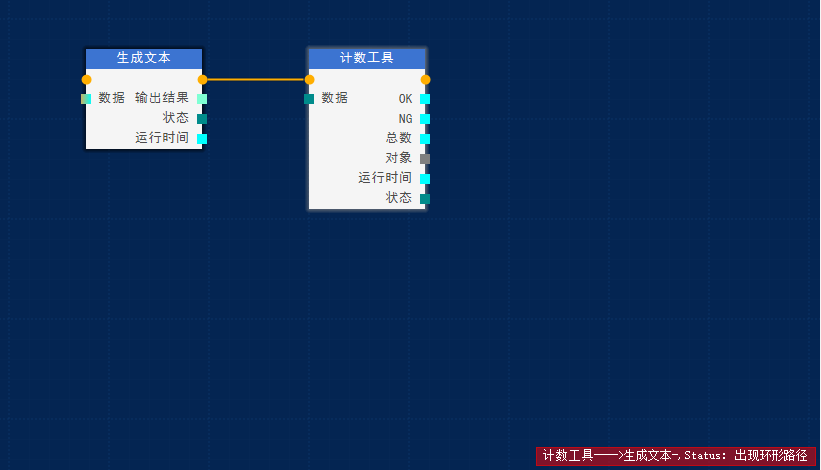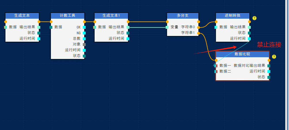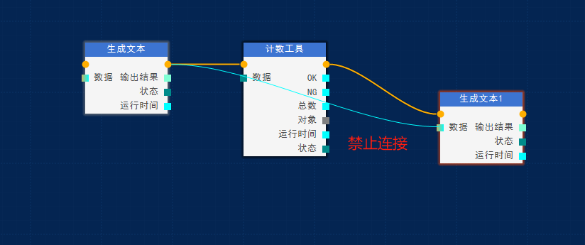 3.禁止循环连接,如 算子2输入 连接 算子1输出, 然后算子1的输入 连接 算子2输出, 此连接为循环连接禁止。