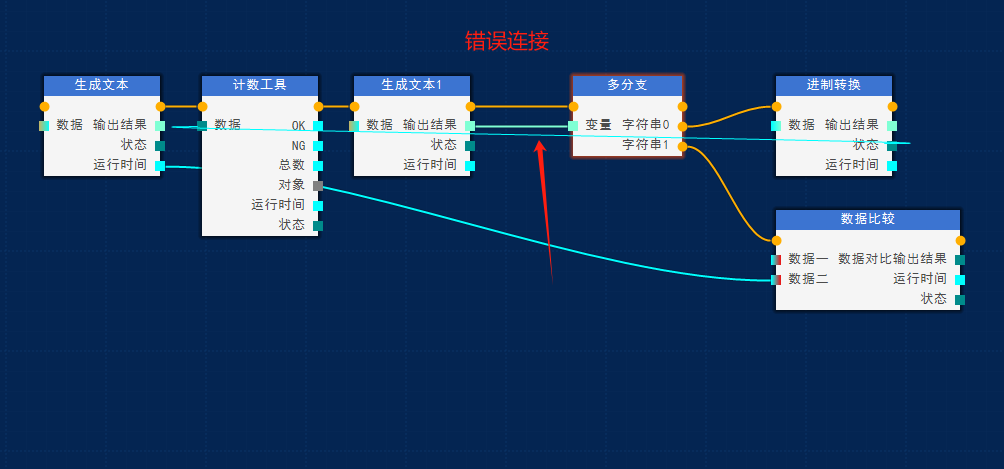 2.禁止跨越节点连接。如 多分支算子子分支2 和子分支1 内部算子禁止互相连接。