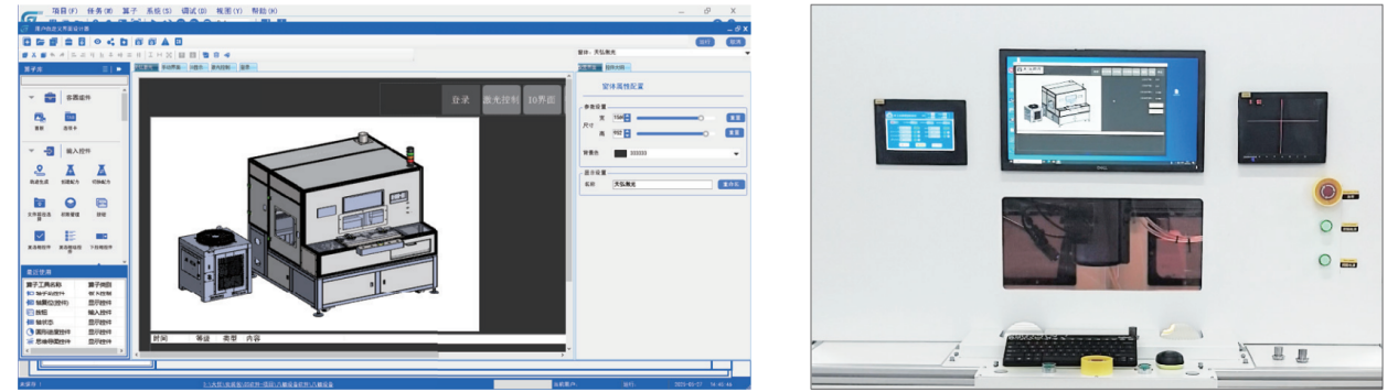 激光焊接工艺是实现金属零部件可靠连接与功能整合的核心。设备用于双工位激光焊接产品,物料经进料位由机械轴自 动输送至加工位,触发激光完成精密焊接后,将成品经进料轴送出,完成作业,双工位交替运作,支持连续生产,兼具高精度定 位与稳定出光控制, 该设备控制软件完全由GS平台开发实现,显著提升焊接效率,用于金属零部件批量化焊接场景。