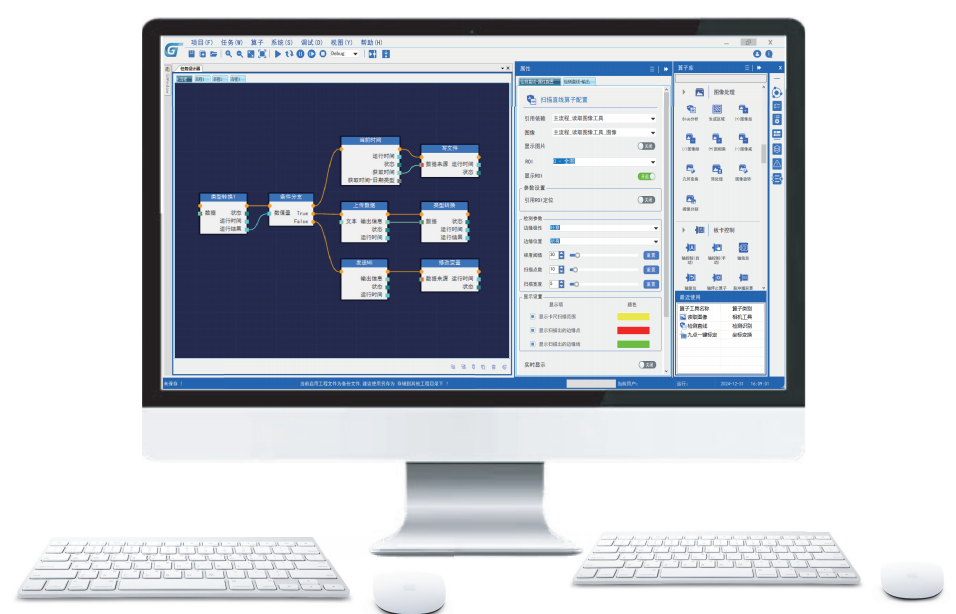 提供了丰富的函数库,包括数据采集、GPIB、串口控制、PLC、运动控制板卡、相机、光源、线激光、视觉定位、视觉测量、视觉检测、数据库交互、数据分析、显示及存储等功能,可以满足各种应用需求。