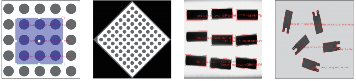 视觉定位:通过GS提供的便利的标定工具,将结果从图像转换到机械坐标和世界坐标,结合灰度匹配或轮廓匹配工具,来获取产 品的位置、角度和比例等数据。算法具有很强的适应性,即使目标出现旋转、缩放、部分遮挡或光纤有非线性变化,仍能完美匹配,并可得到亚像素级别的定位精度。
