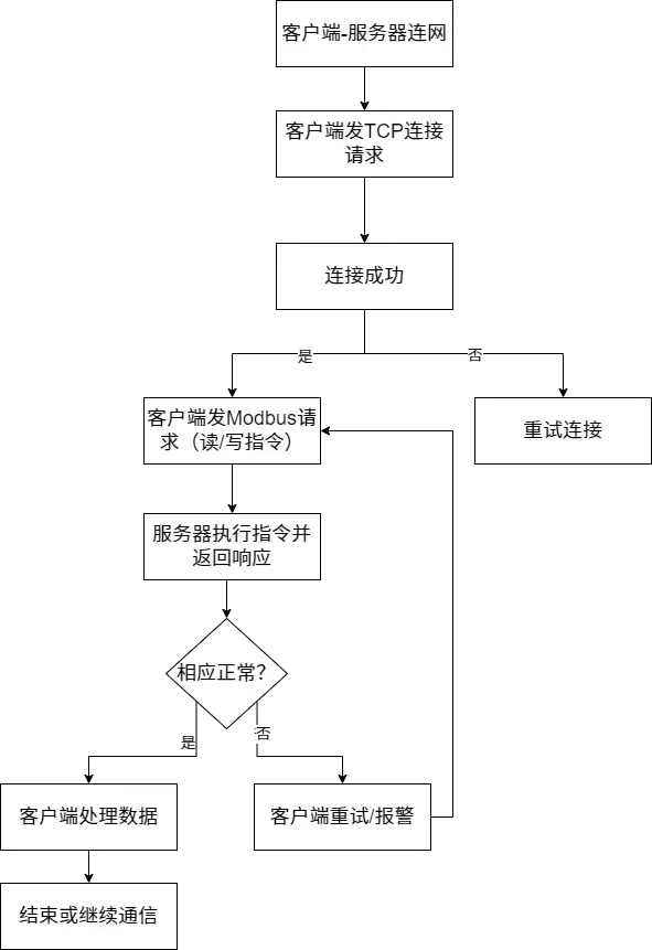 Modbus-TCP 是 Modbus 协议在以太网中的扩展,基于 TCP/IP 协议栈,采用 “客户端 - 服务器” 架构,数据帧格式简化(去除校验位,依赖 TCP 可靠性)。