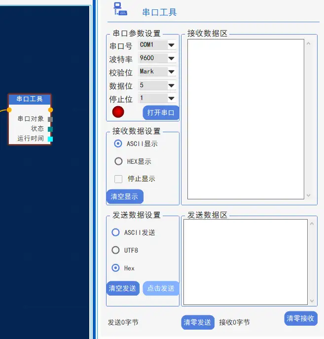 GraniStudio 提供 “发送文本” 和 “ 接收文本” 两个核心算子,实现串口通道的数据交互: