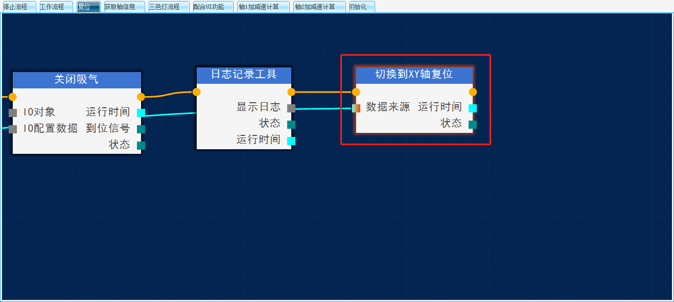当设备按下暂停时可能会出现分支动作没运行完成的情况(例如轴未复位完成),判断设备是否暂停,暂停中将复位步序变量值到存储步序变量,那么当设备继续工作时即可继续未完成的工作,由于设备实际不需要暂停功能,因此作为预留。