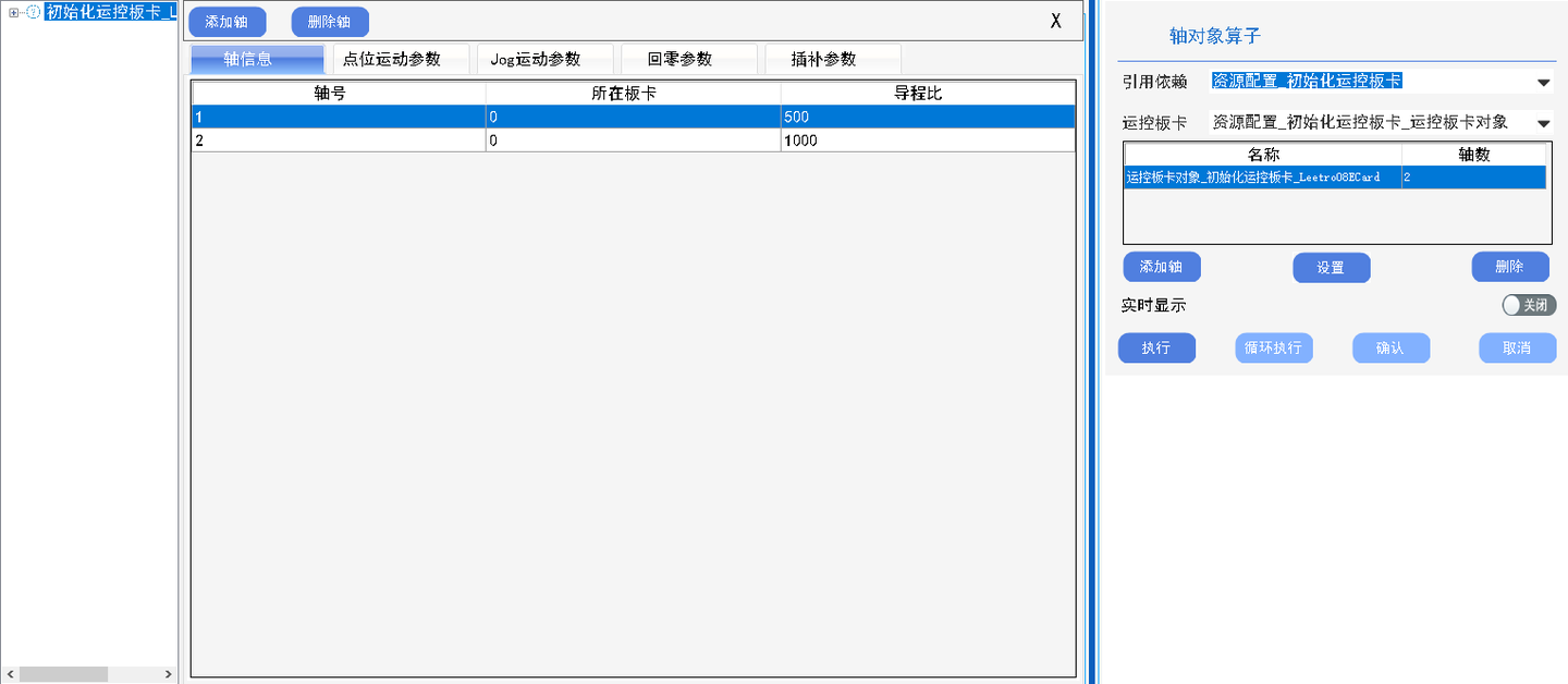 第一步:配置板卡资源,通过初始化运控板卡算子实现板卡连接以及配置轴初始化参数。