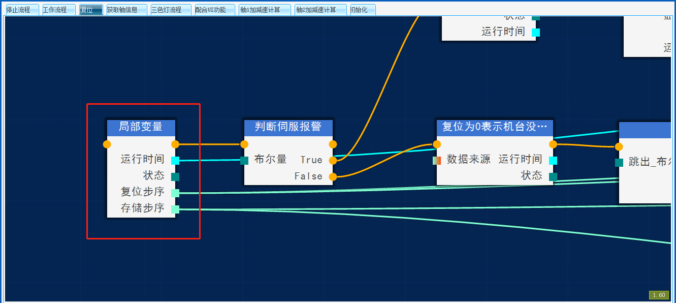 步骤1:定义状态机变量,默认=关闭气缸:通过局部变量先定义两个变量,为暂停和继续功能使用