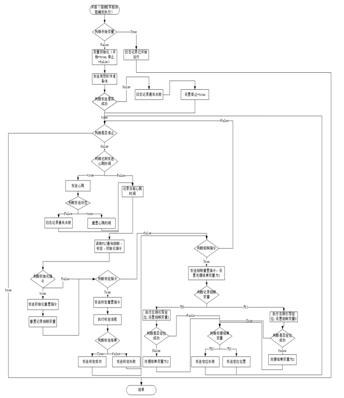 PLC交互流程为工作流程,主要用于实现读取PLC通知指令根据指令执行对应动作,流程图如下: