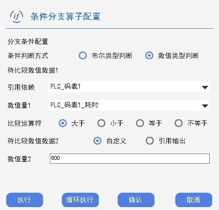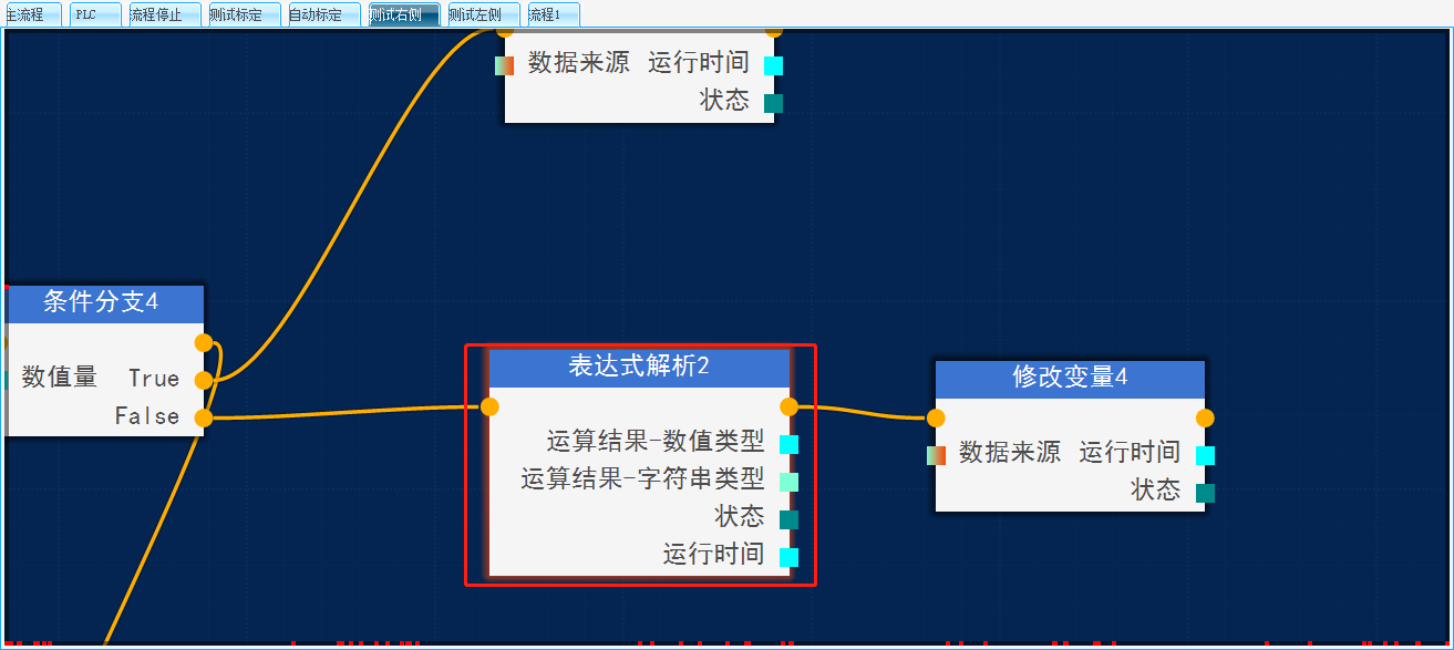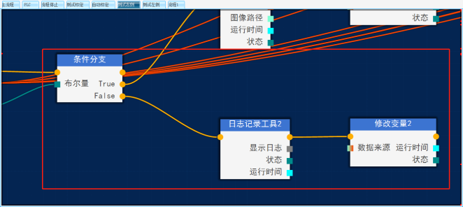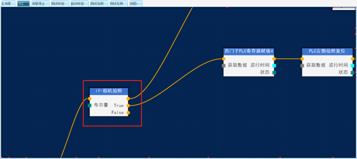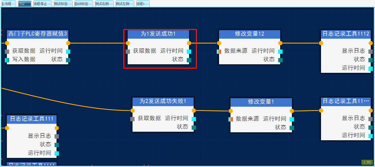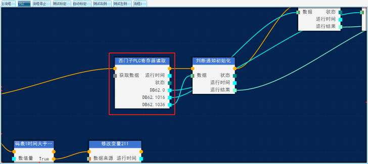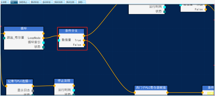 步骤4. 判断发送成功:使用条件分支算子判断西门子PLC寄存器赋值算子输出状态,状态为true表名写入值成功,状态为false表名写入失败。