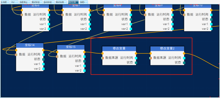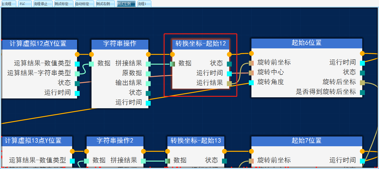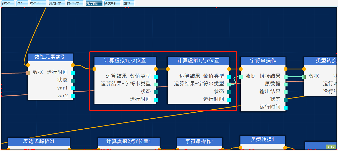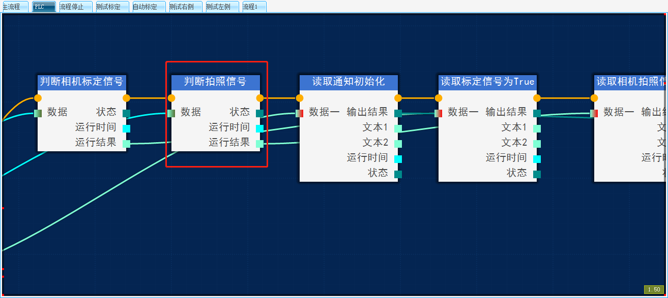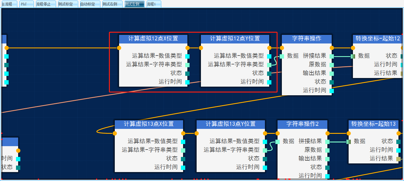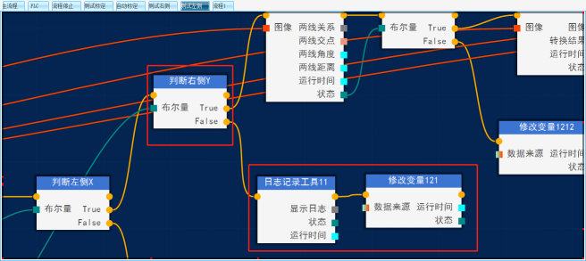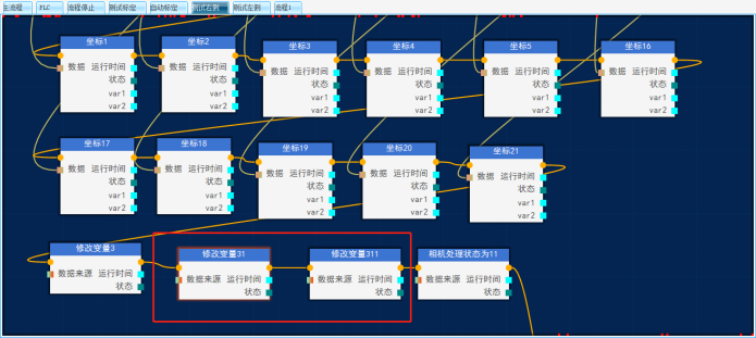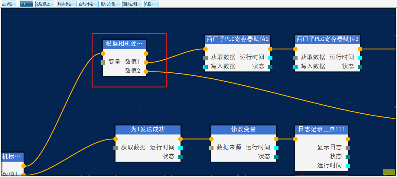 将提取出的XY值通过修改变量算子给到发送位置变量中,同时将拍照次数变量设置1,表示右侧完成定位,下次触发拍照运行左测定位流程