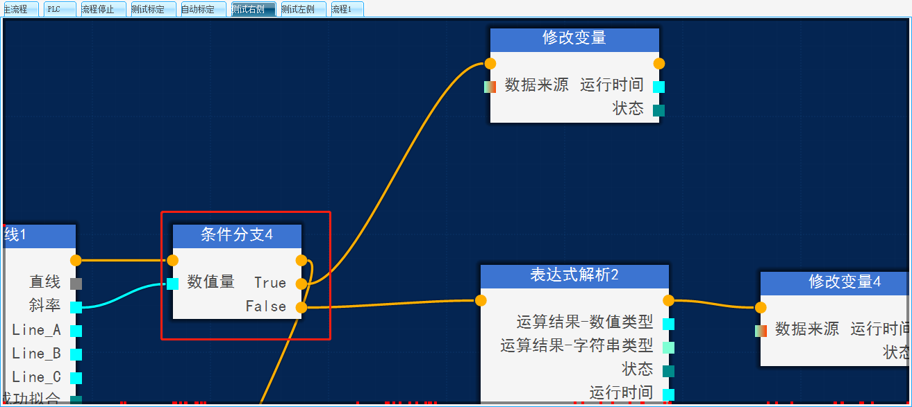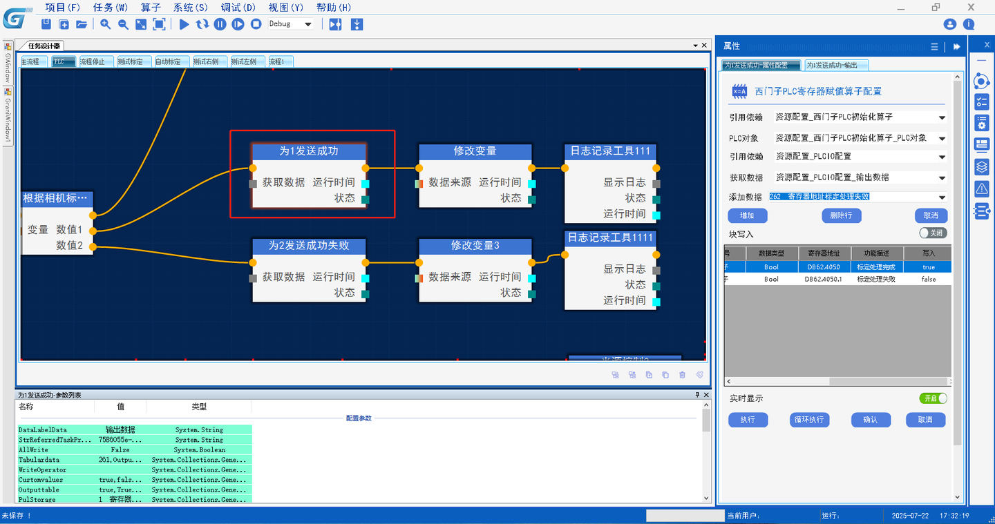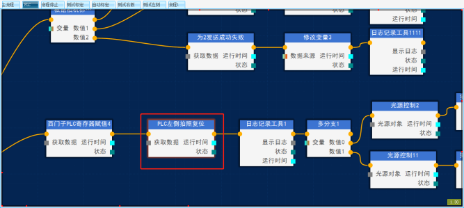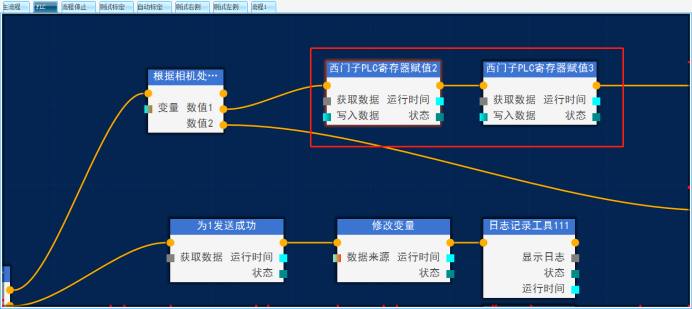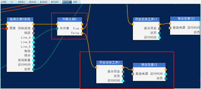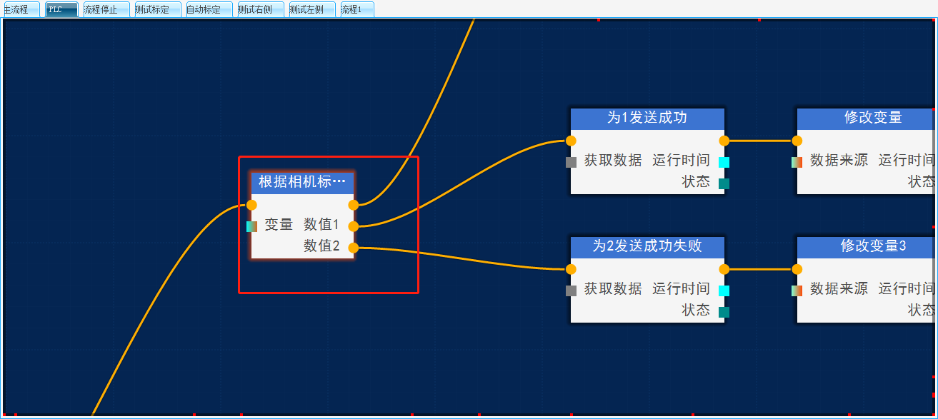 如果不成功使用日记记录并将相机处理状态变量赋值为2,PLC流程通过多分支工具对此变量进行判断从而确定右侧定位失败