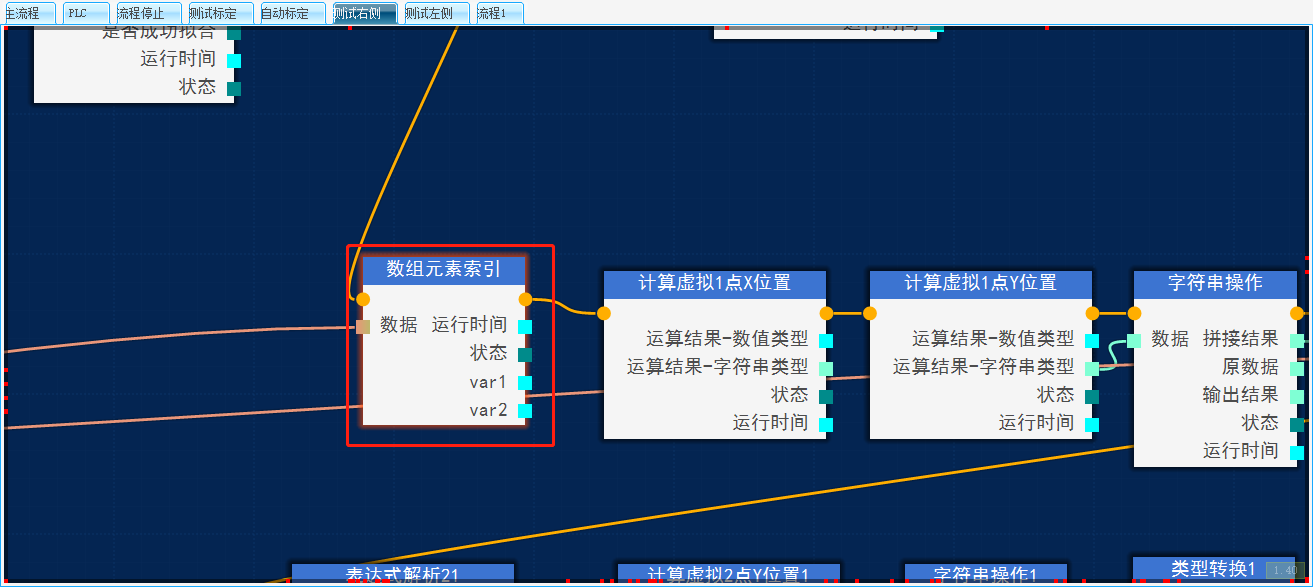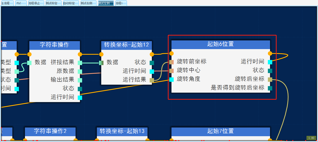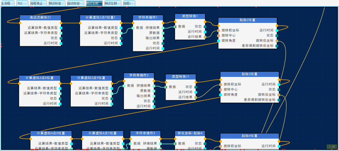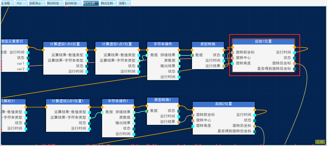 将提取出的XY值通过修改变量算子给到发送位置变量中,同时将拍照次数变量设置0,表示左侧完成定位,下次触发拍照运行右测定位流程