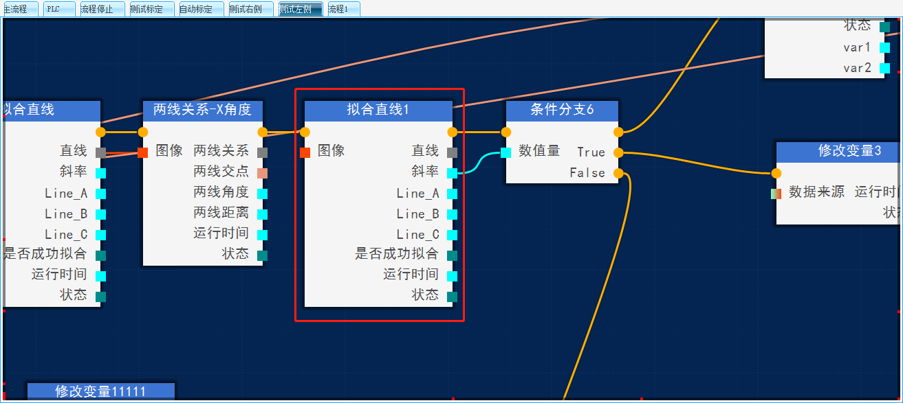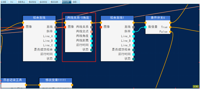 小于0使用表达式解析算子把角度*-1,引用两线角度,将计算值通过修改变量算子赋值给角度变量,