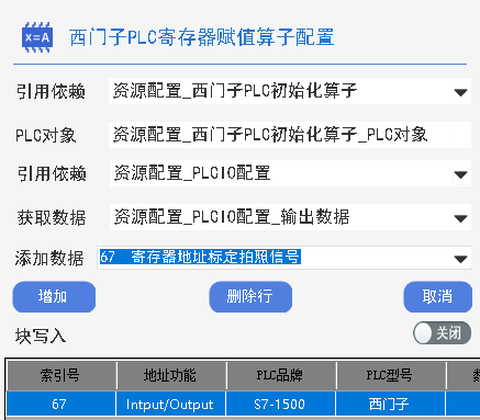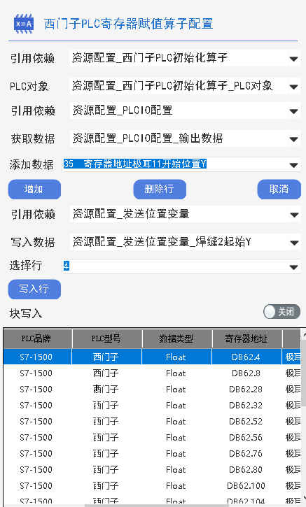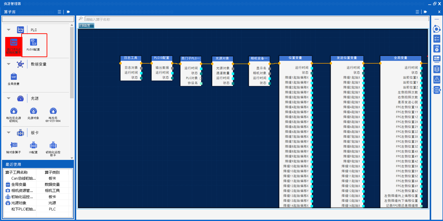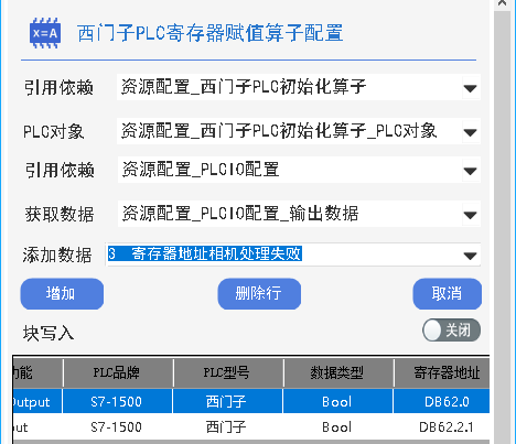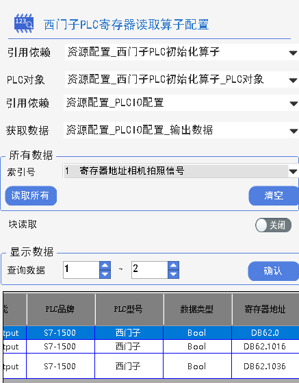 第二步:配置PLC寄存器地址资源以及连接西门子S71500PLC,通过PLCIO配置和西门子PLC初始化算子实现