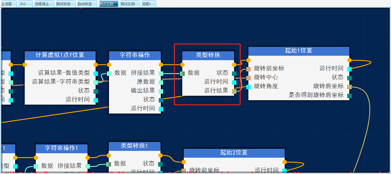 步骤9.判断标定信号:判断PLC通知初始化首先使用类型转换将标定地址结果转换为字符串