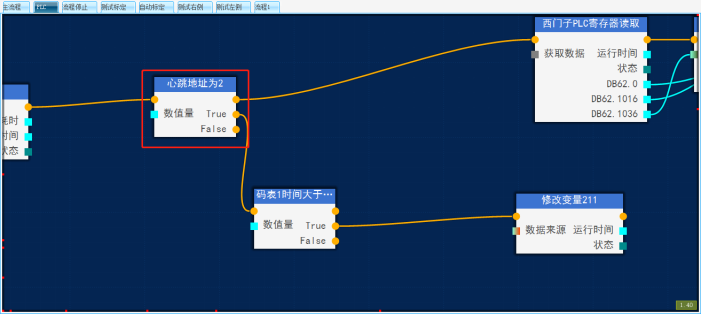 通过条件分支算子判断心跳地址是否为2,为2说明已经给心跳地址写入过false