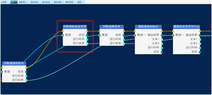 步骤4.判断标定是否成功:通过条件分支算子判断一键九点标定算子状态,标定失败将标定状态变量设置为2