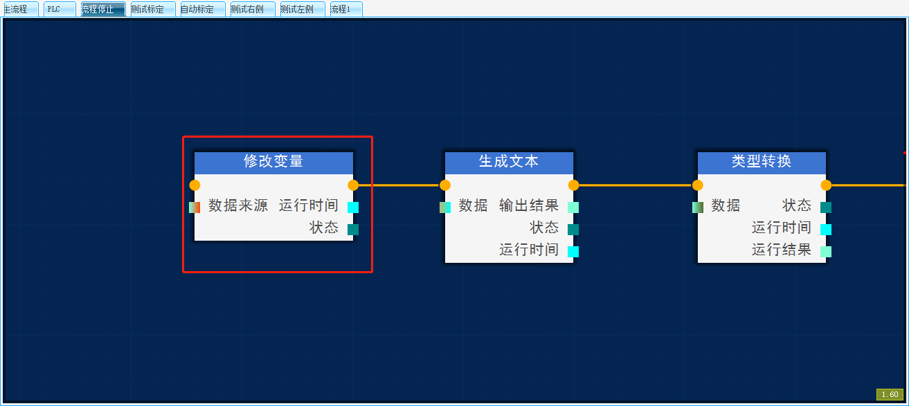 步骤2. 变量初始化:通过修改变量算子实现每次启动变量的初始化,确保每次启动时流程处于统一基准状态,从源头规避因变量残留值引发的逻辑混乱,例如开始、停止等变量