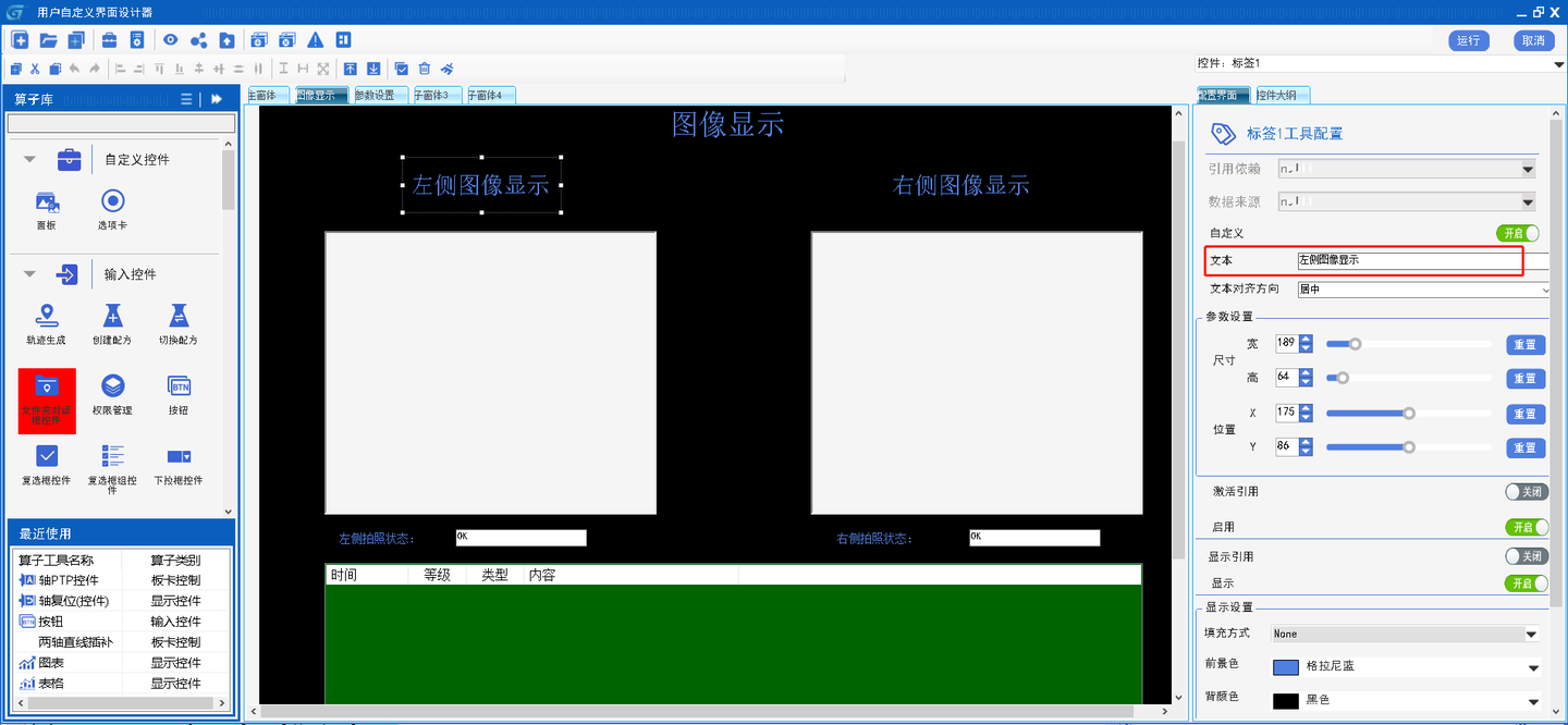功能名称说明:例如“左侧图像显示”,通过标签控件设置显示名称实现,配置文字大小、显示颜色以及显示位置